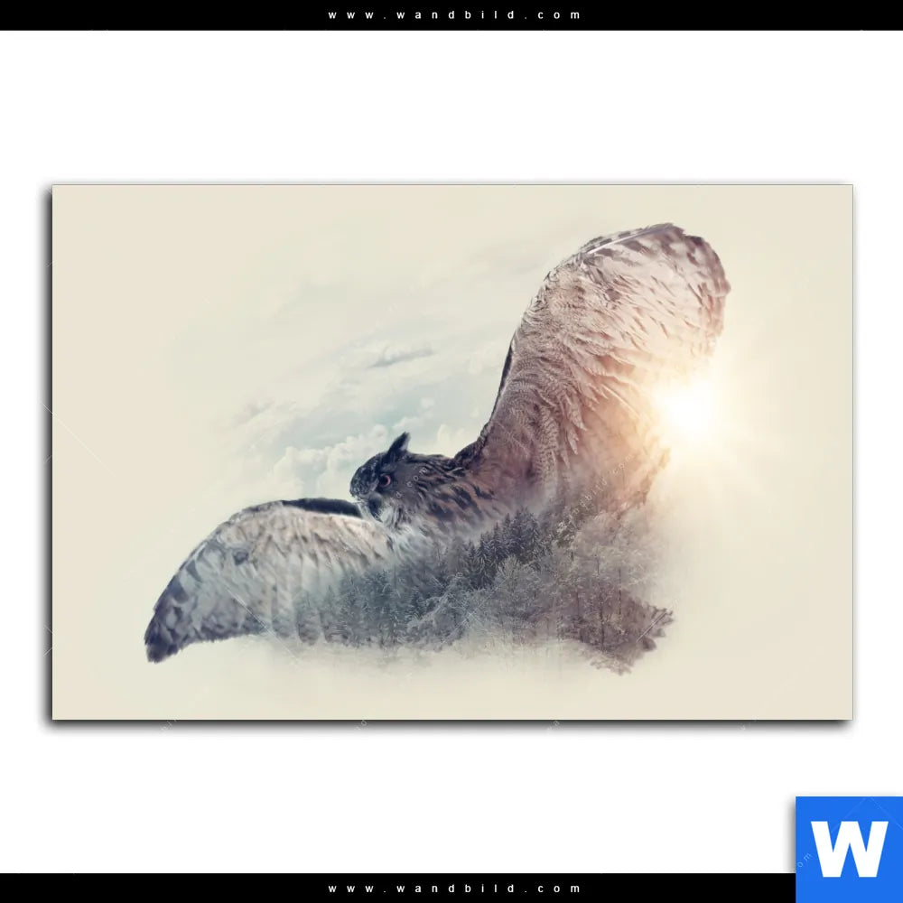 Aluminiumbild gebürstet | Eule & Wald No.2 | Querformat