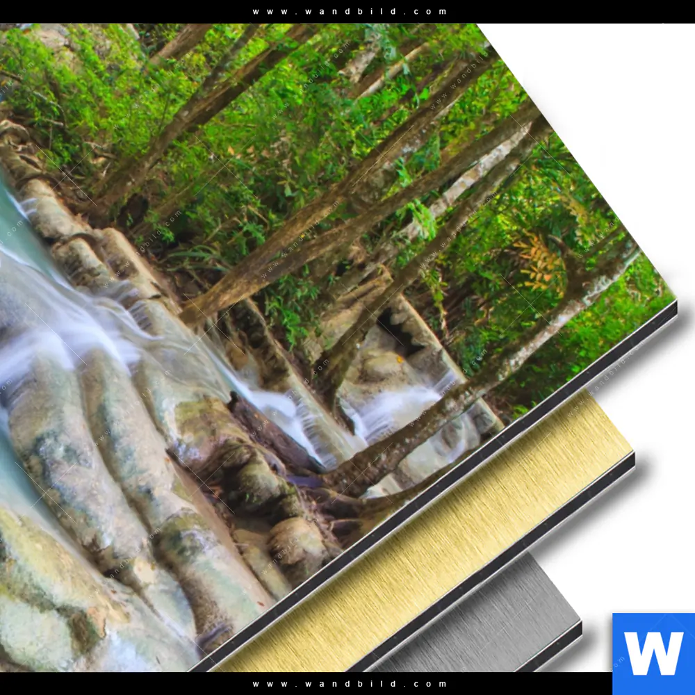 Aluminiumbild gebürstet | Exotischer Wasserfall | Hochformat