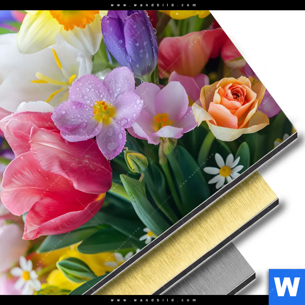 Aluminiumbild gebürstet | Farbenfrohe Frühlingsblüten | Rund
