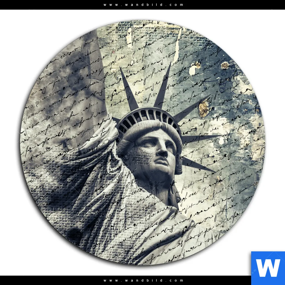 Aluminiumbild gebürstet | Freiheitsstatue im Sandsturm | Rund