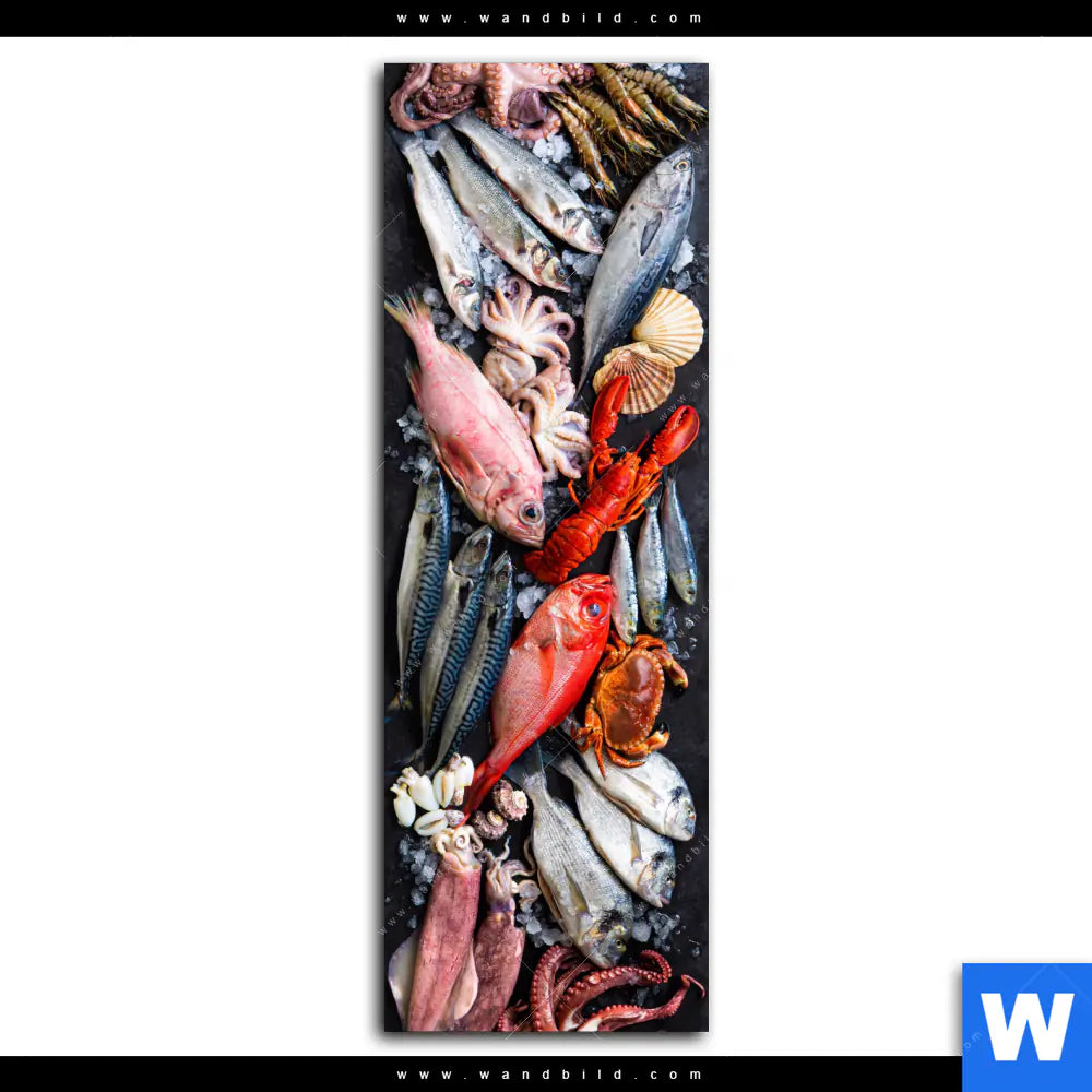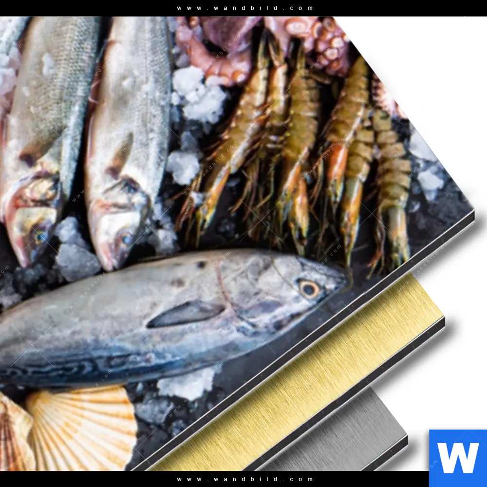 Aluminiumbild gebürstet | Frischer Fisch und Meeresfrüchte | Schmal