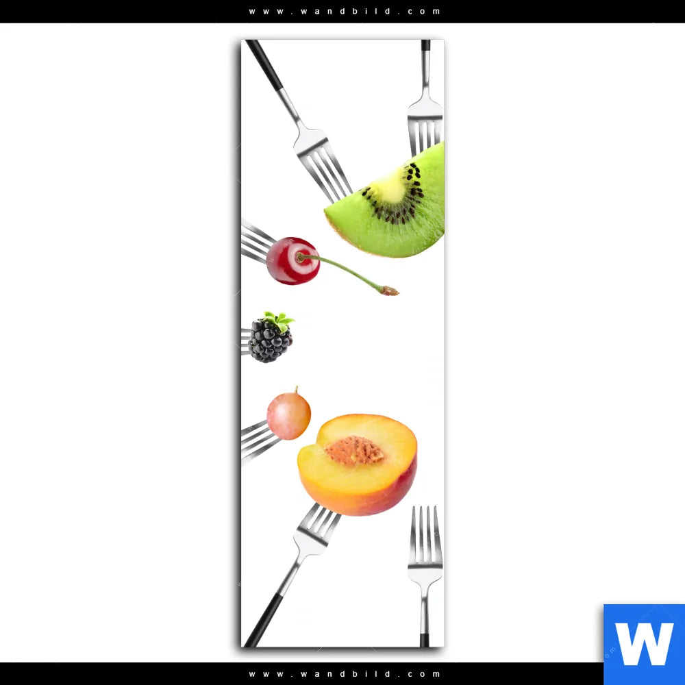 Aluminiumbild gebürstet | Früchte auf Gabeln | Schmal