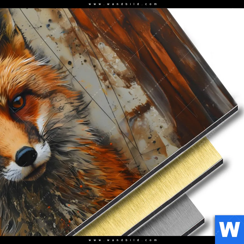 Aluminiumbild gebürstet | Fuchs - Grunge Stil | Querformat