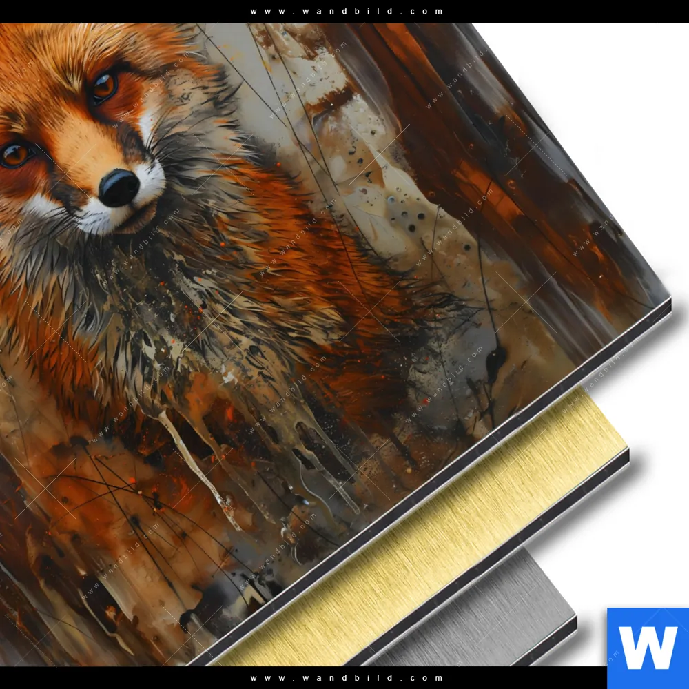 Aluminiumbild gebürstet | Fuchs - Grunge Stil | Rund