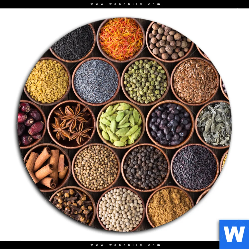 Aluminiumbild gebürstet | Gewürze & Kräuter | Rund