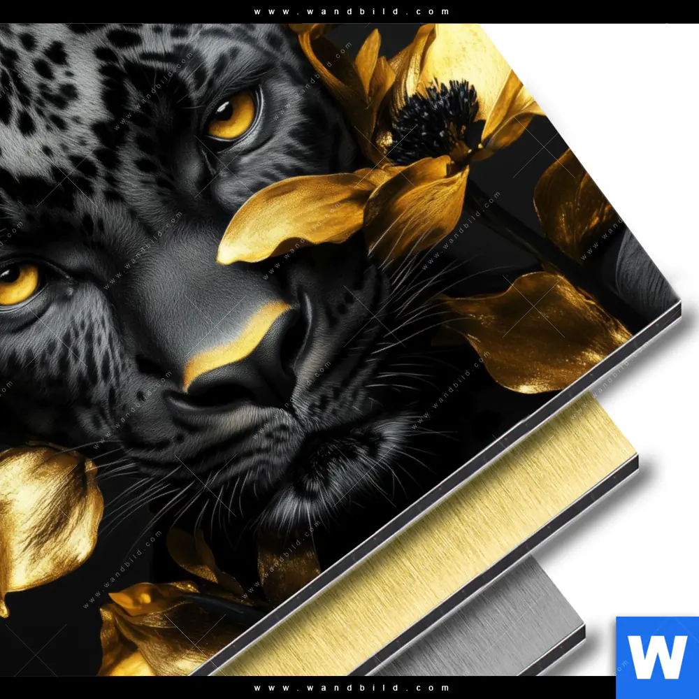 Aluminiumbild gebürstet | Goldblumen & Panther | Rund