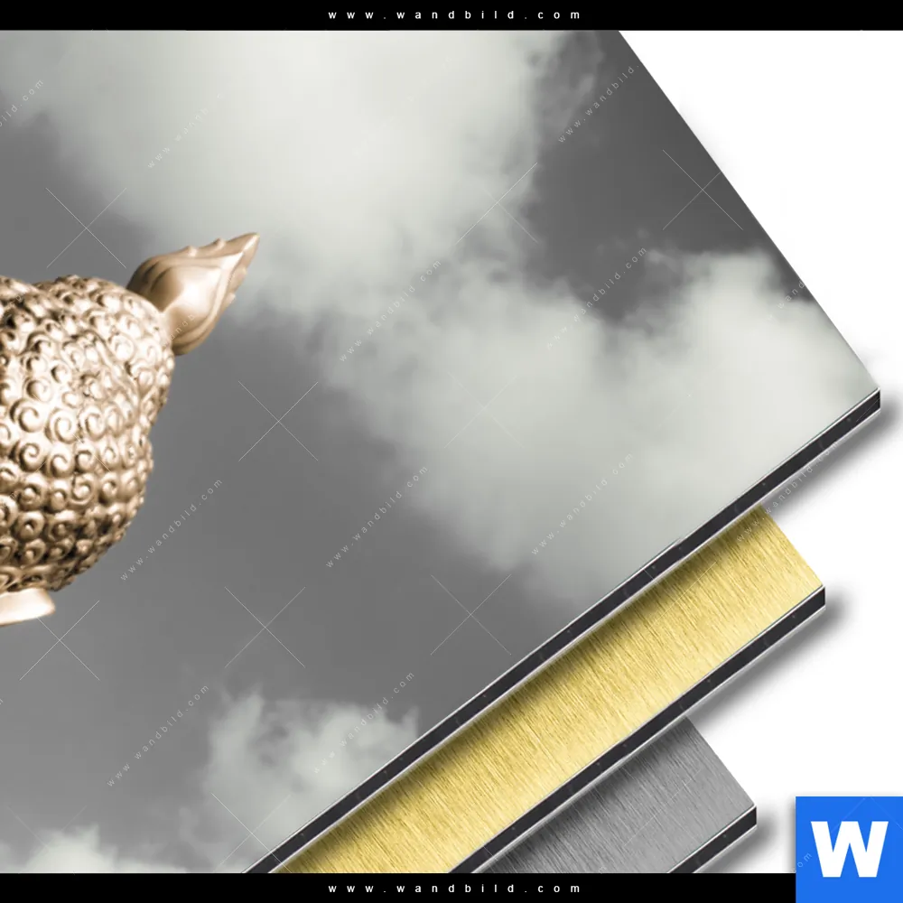 Buddha - Feng Shui Aluminiumbild mit metallischem Effekt inkl. vormontiertem Rückrahmen