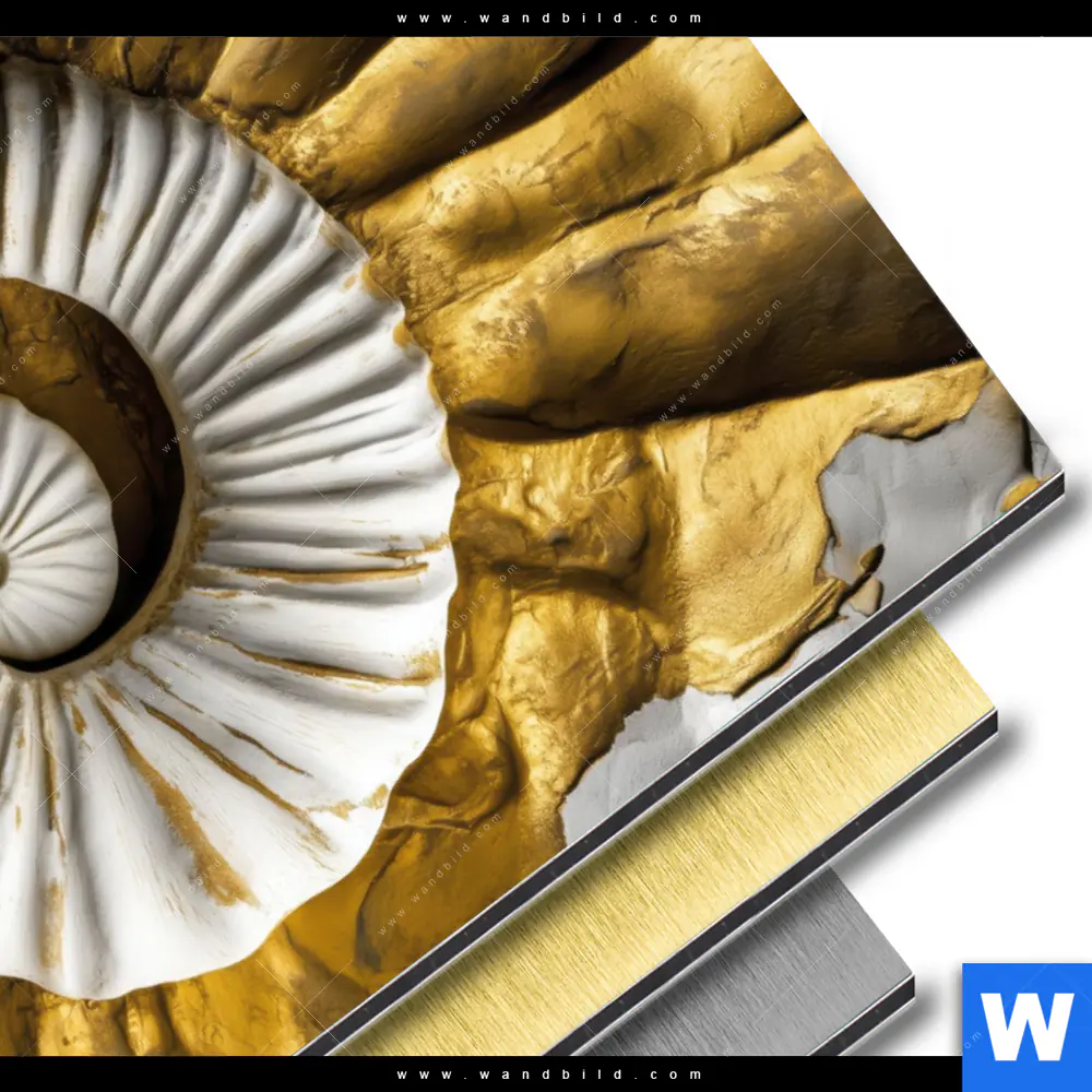 Aluminiumbild gebürstet | Goldene Muschel-Kunst | Hochformat