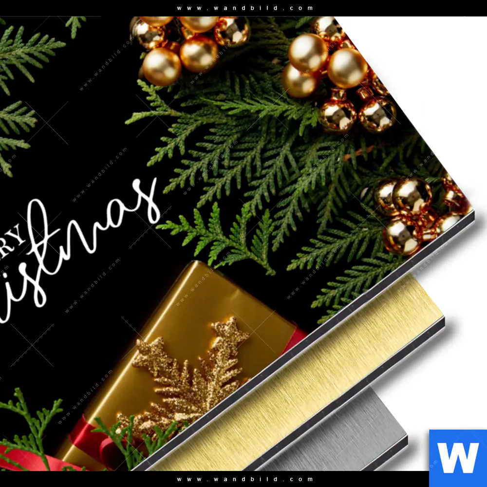 Aluminiumbild gebürstet | Goldene Weihnachtsgrüße | Hochformat