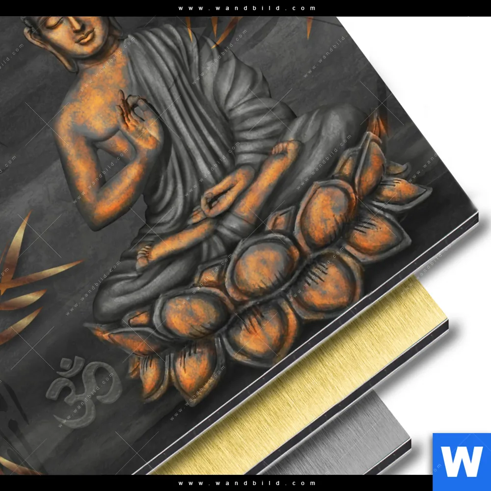 Buddha - Feng Shui Aluminiumbild mit metallischem Effekt inkl. vormontiertem Rückrahmen