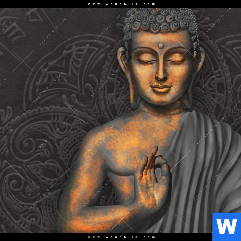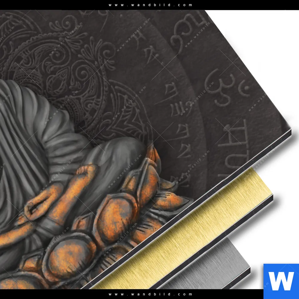 Buddha - Feng Shui Aluminiumbild mit metallischem Effekt inkl. vormontiertem Rückrahmen