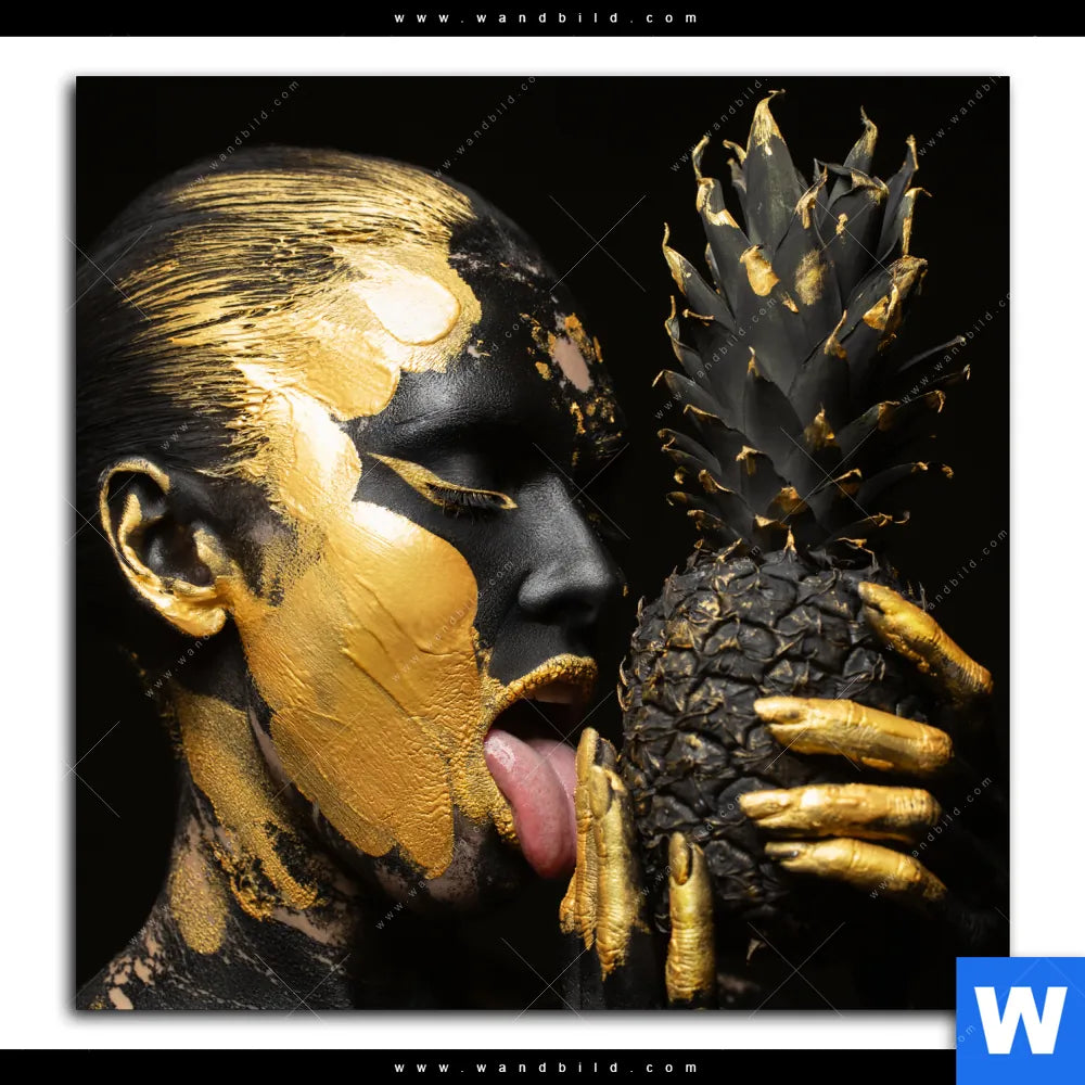 Aluminiumbild gebürstet | Goldenes Ananasmädchen No.2 | Quadrat