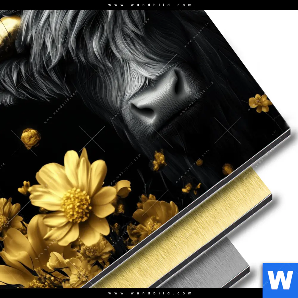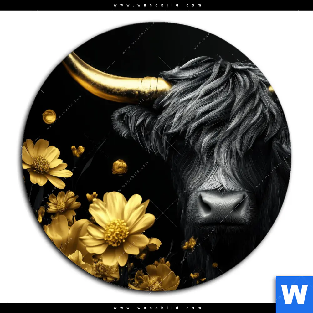 Aluminiumbild gebürstet | Goldenes Hochlandrind | Rund
