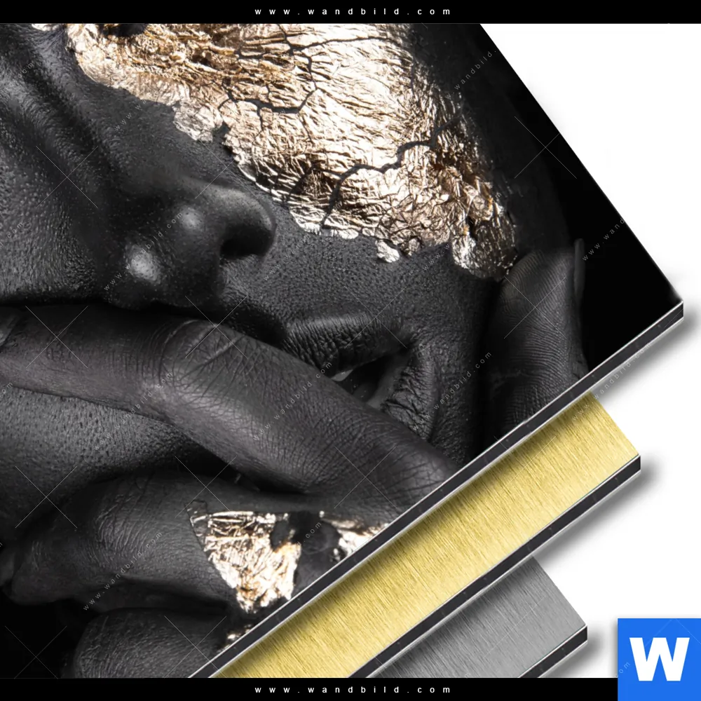 Aluminiumbild gebürstet | Goldenes Make-up | Quadrat