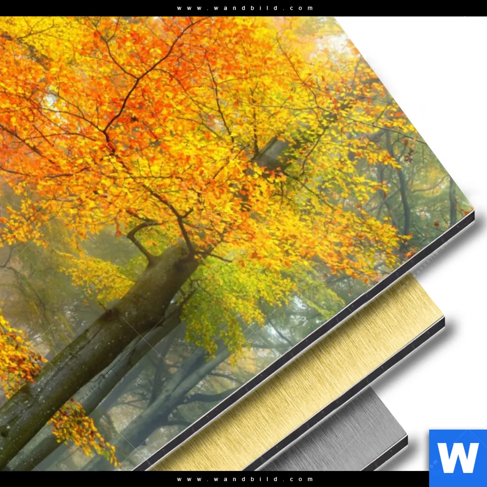 Landschaften, Wald - Bäume Aluminiumbild mit metallischem Effekt inkl. vormontiertem Rückrahmen