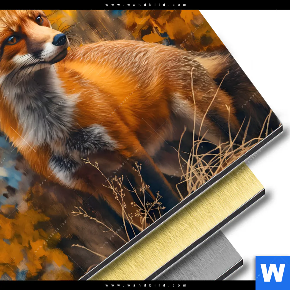 Aluminiumbild gebürstet | Herbstzeit mit Rotfuchs | Rund