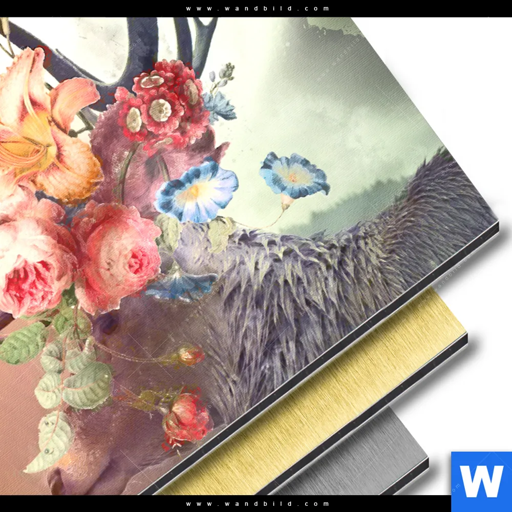 Aluminiumbild gebürstet | Hirsch & Blumen | Quadrat