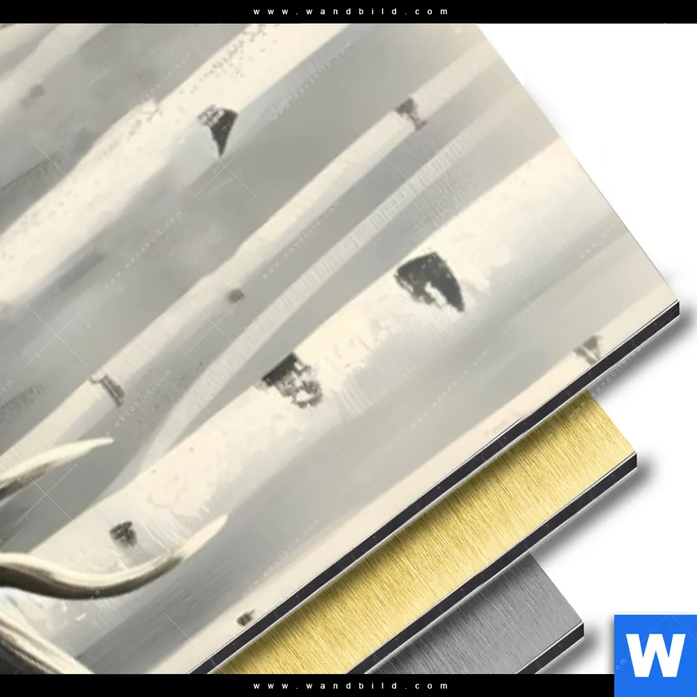 Aluminiumbild gebürstet | Hirsch im Birkenwald | Schmal