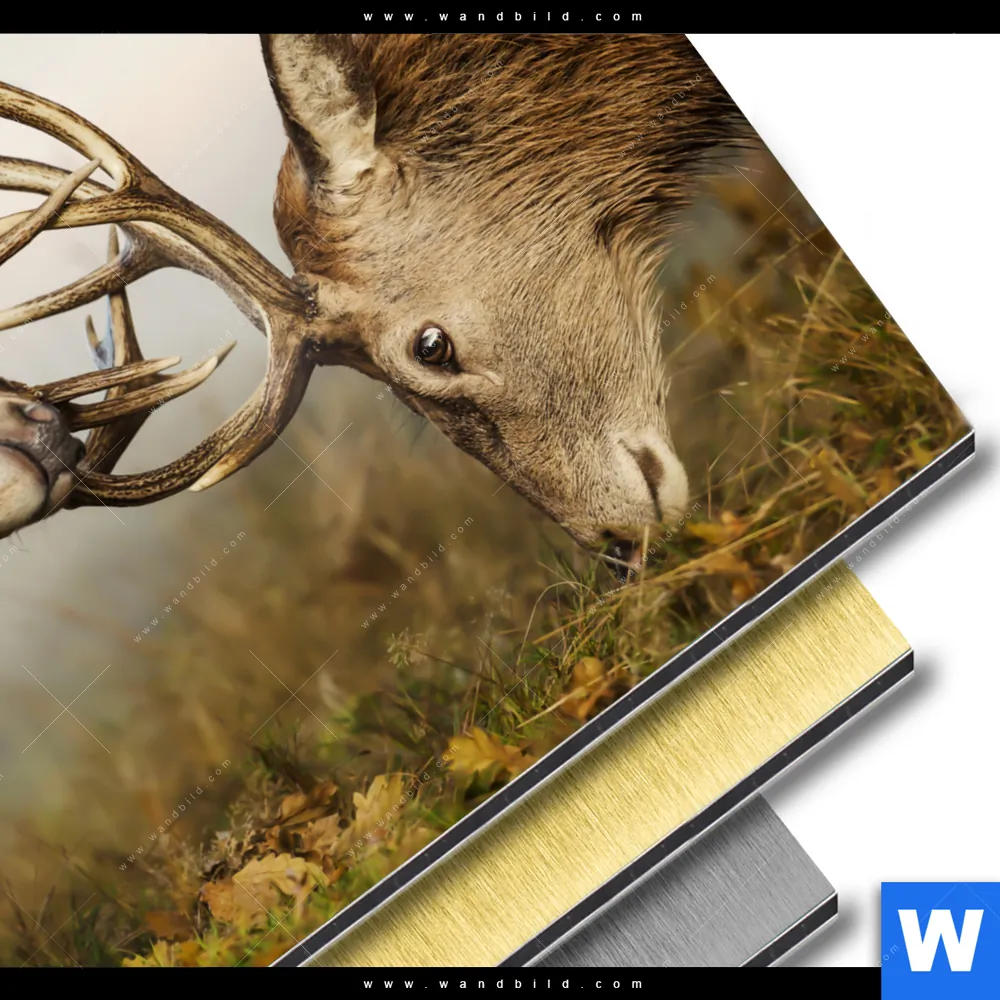 Aluminiumbild gebürstet | Kämpfende Hirsche | Rund