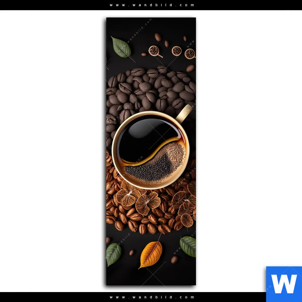 Aluminiumbild gebürstet | Kaffee mit Blattdekoration | Schmal