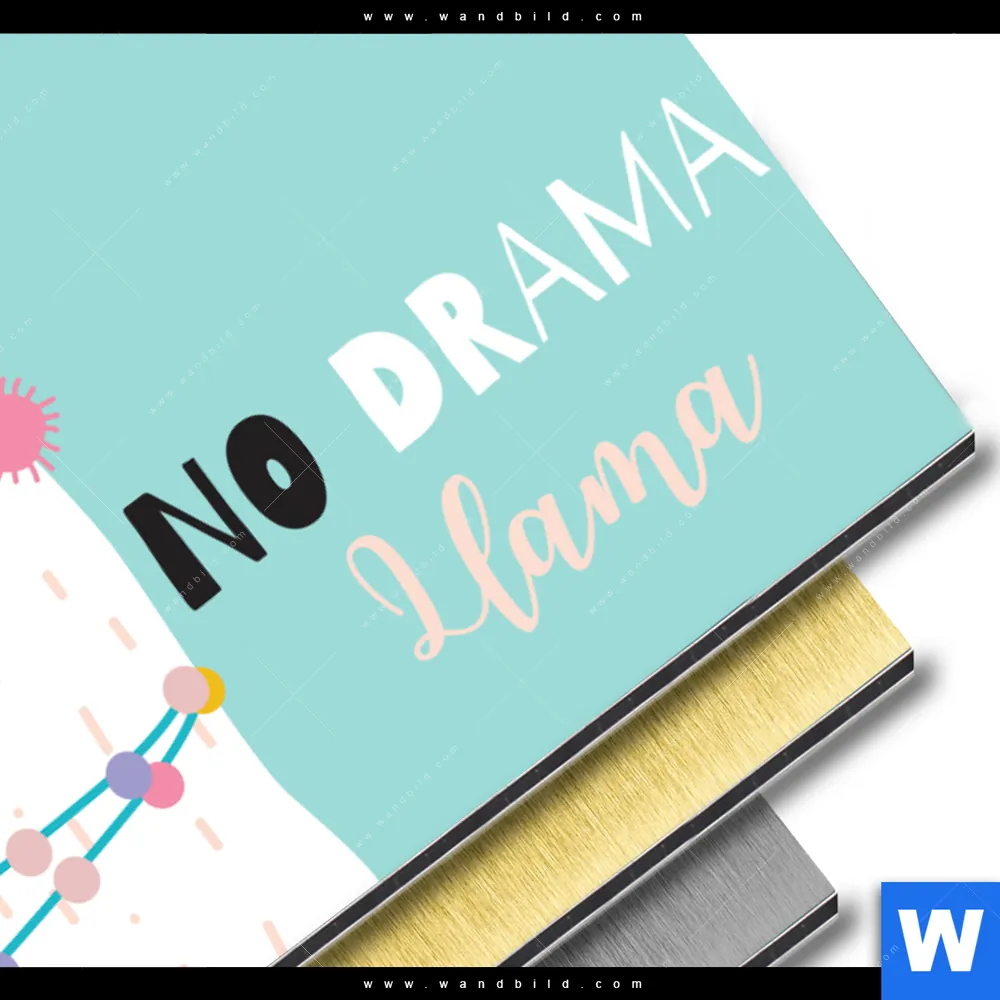 Aluminiumbild gebürstet | Kein Drama Lama | Querformat