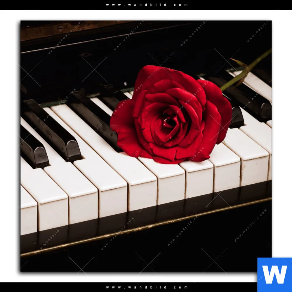 Aluminiumbild gebürstet | Klavier & Rose | Quadrat