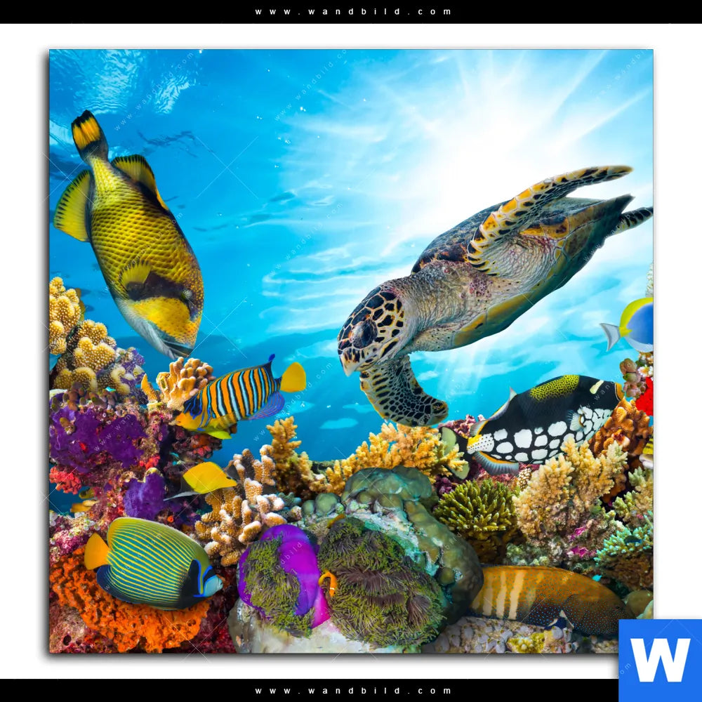 Aluminiumbild gebürstet | Korallen & Fische | Quadrat