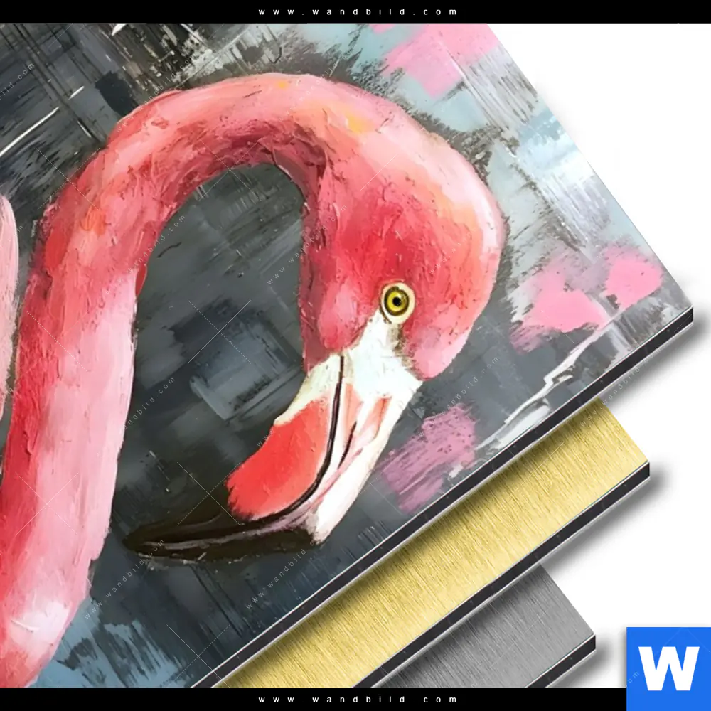 Aluminiumbild gebürstet | Kunstvoller Flamingo | Hochformat