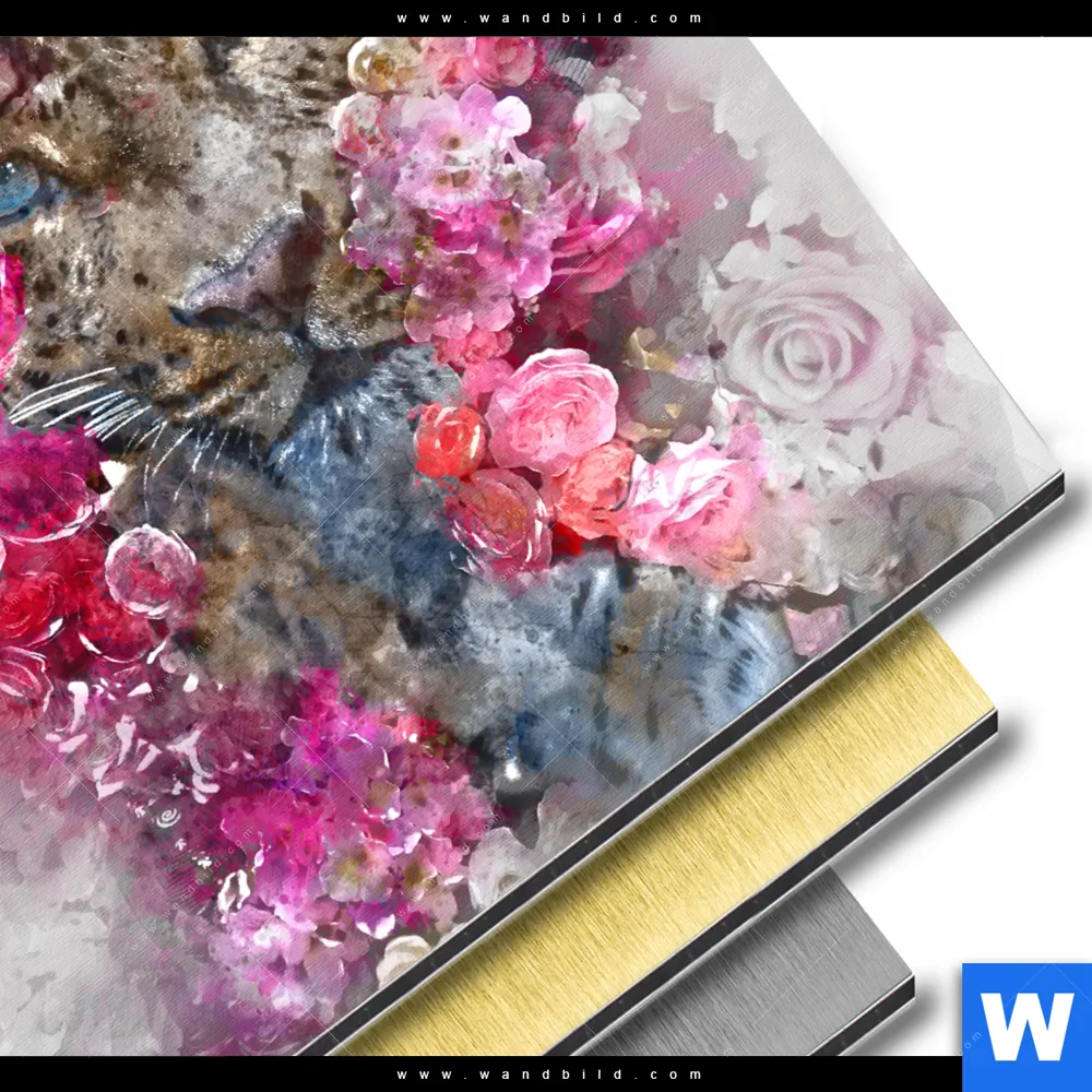 Aluminiumbild gebürstet | Leopard & Blumen | Rund