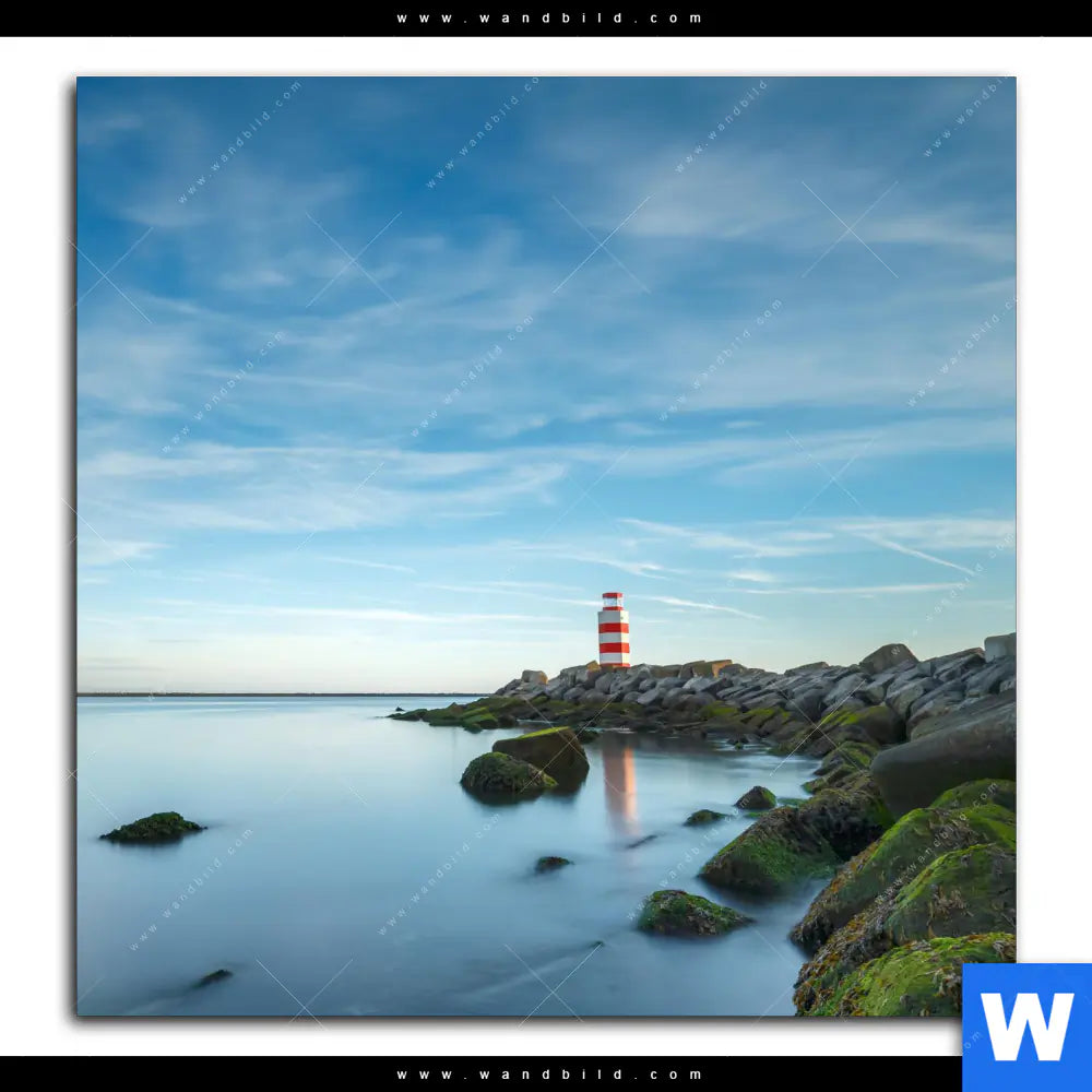 Aluminiumbild gebürstet | Leuchtturm an der Nordsee | Quadrat
