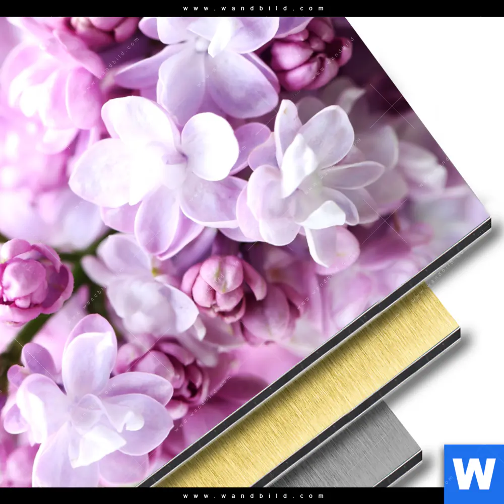 Aluminiumbild gebürstet | Lila Fliederblüten | Quadrat