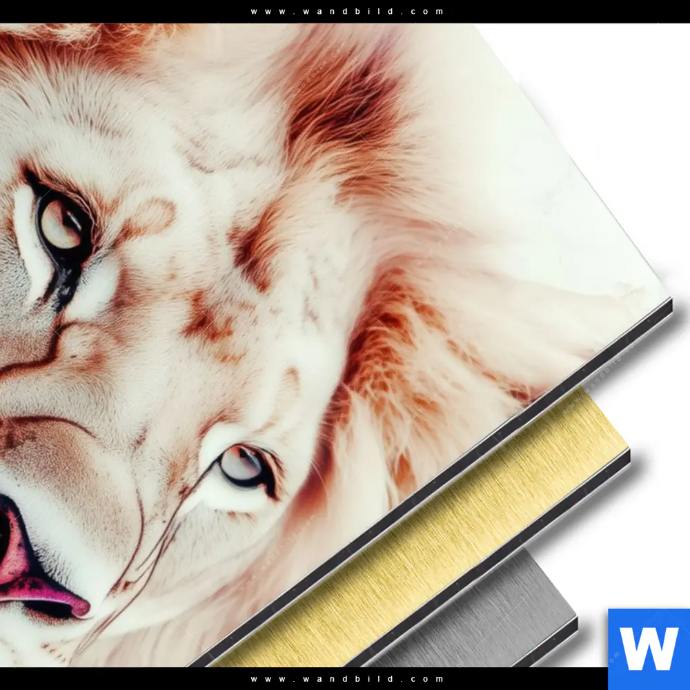 Aluminiumbild gebürstet | Löwe im Farbenspiel | Hochformat