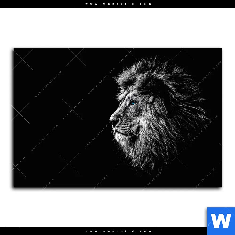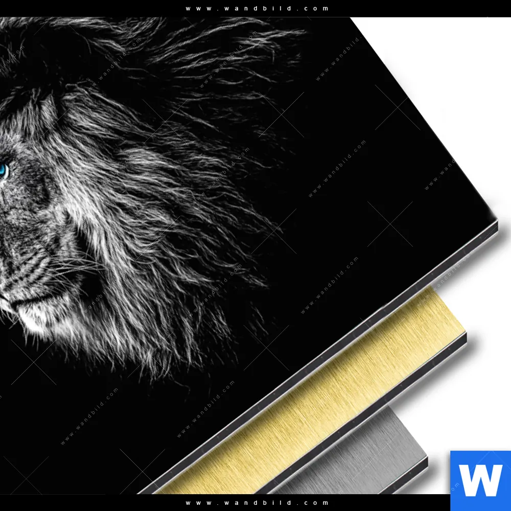 Aluminiumbild gebürstet | Löwe mit blauen Augen | Querformat