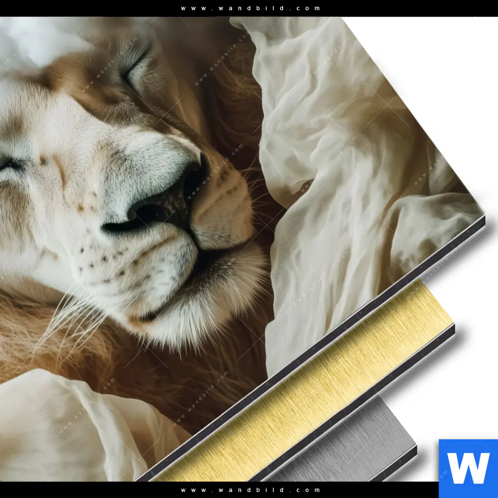 Aluminiumbild gebürstet | Löwe sanft umhüllt | Quadrat