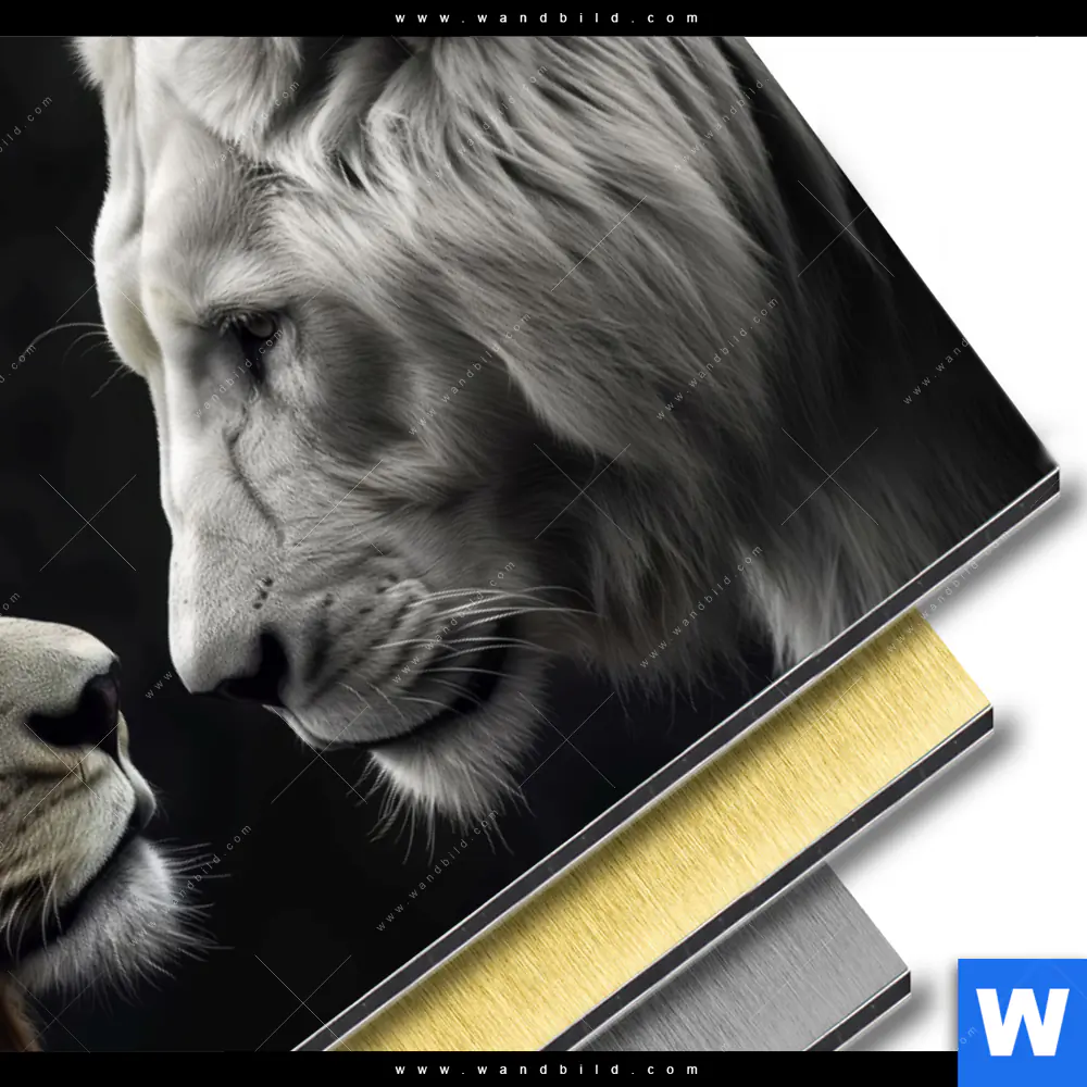 Aluminiumbild gebürstet | Löwen - Zweisamkeit | Querformat