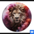 Aluminiumbild gebürstet | Löwengesicht in buntem Rauch | Rund