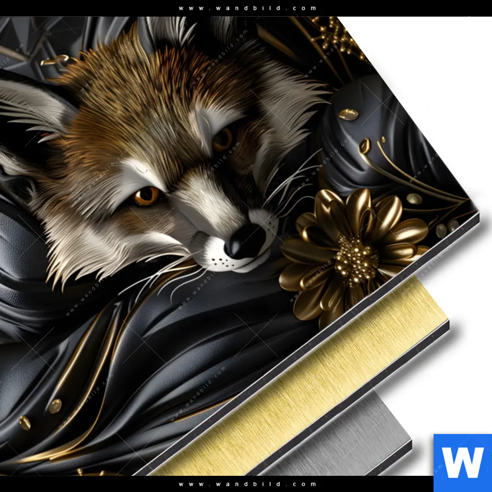 Aluminiumbild gebürstet | Luxuriöser Fuchs mit Blumen | Querformat