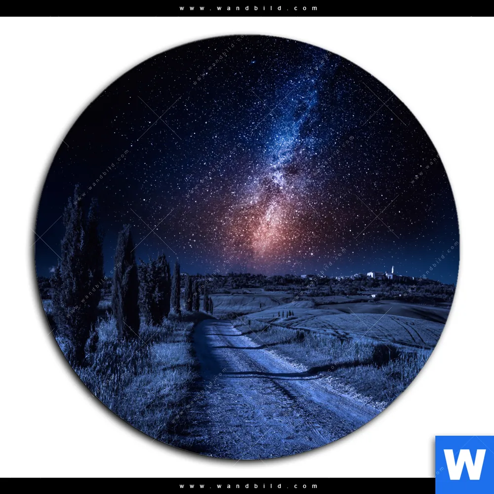 Aluminiumbild gebürstet | Milchstraße über einem Feldweg | Rund