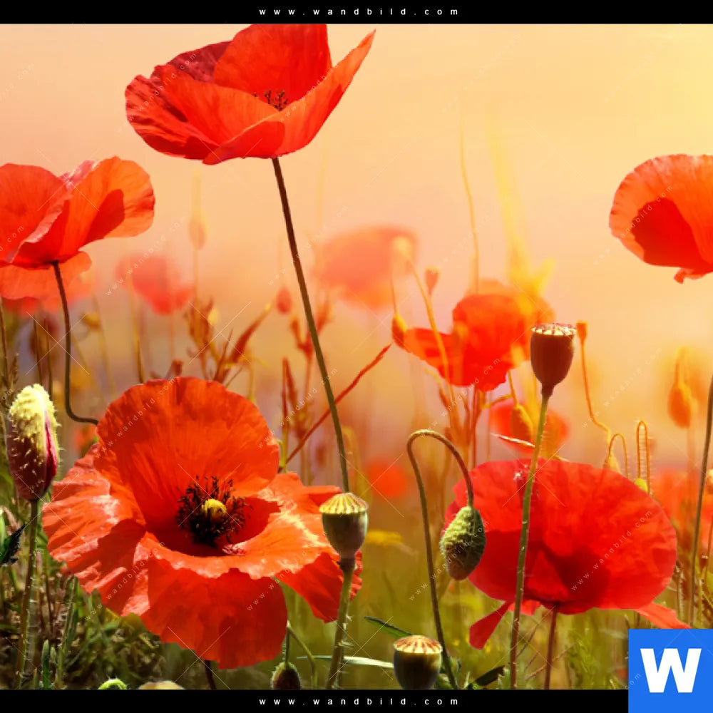 Aluminiumbild gebürstet | Mohnblumenfeld bei Sonnenuntergang | Panorama