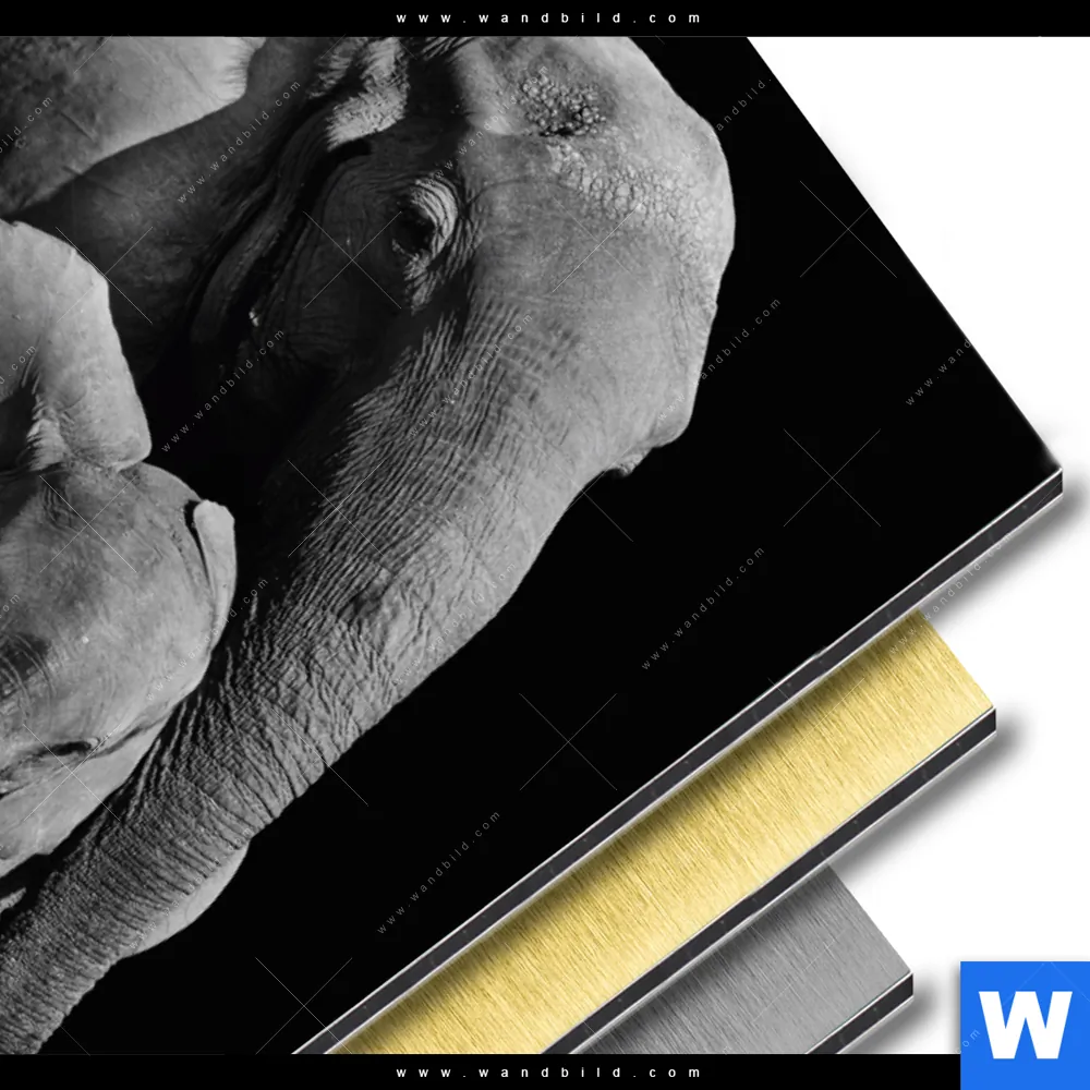 Aluminiumbild gebürstet | Mutter & Baby Elefant | Hochformat