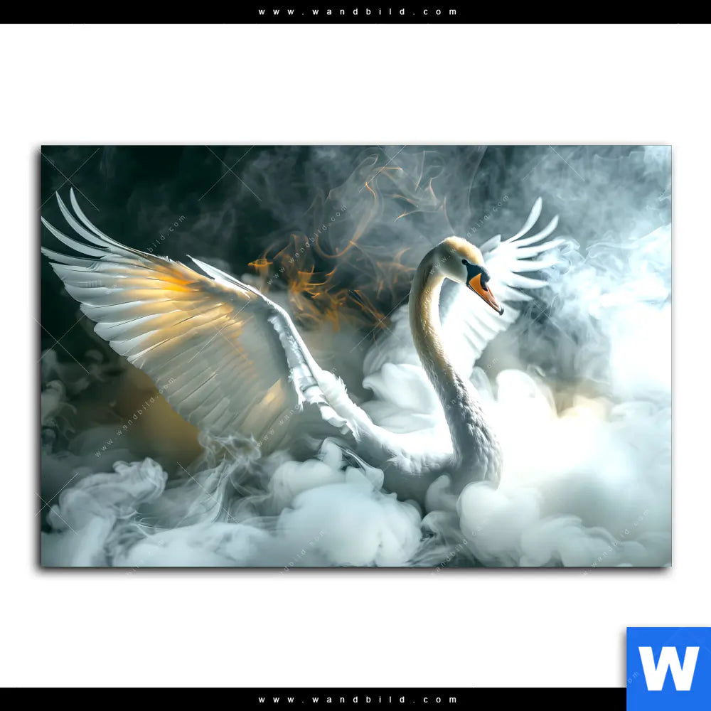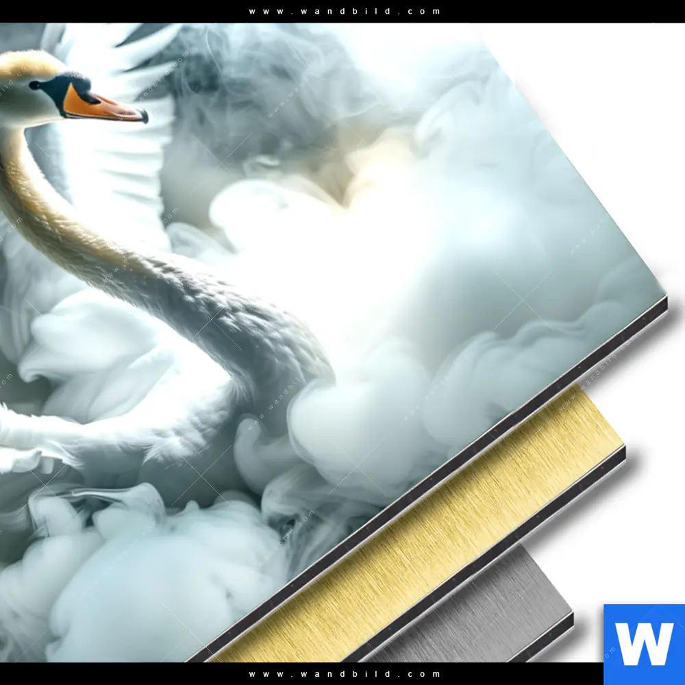 Aluminiumbild gebürstet | Mystischer Schwan im Nebel | Querformat