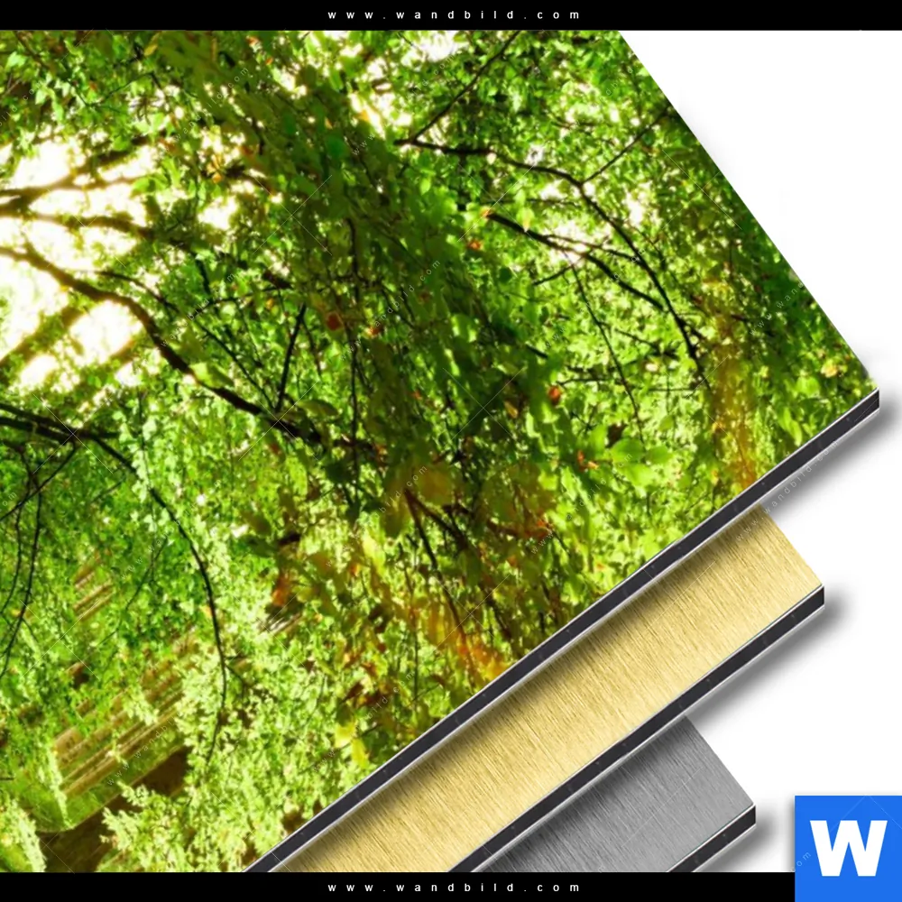 Landschaften, Wald - Bäume Aluminiumbild mit metallischem Effekt inkl. vormontiertem Rückrahmen