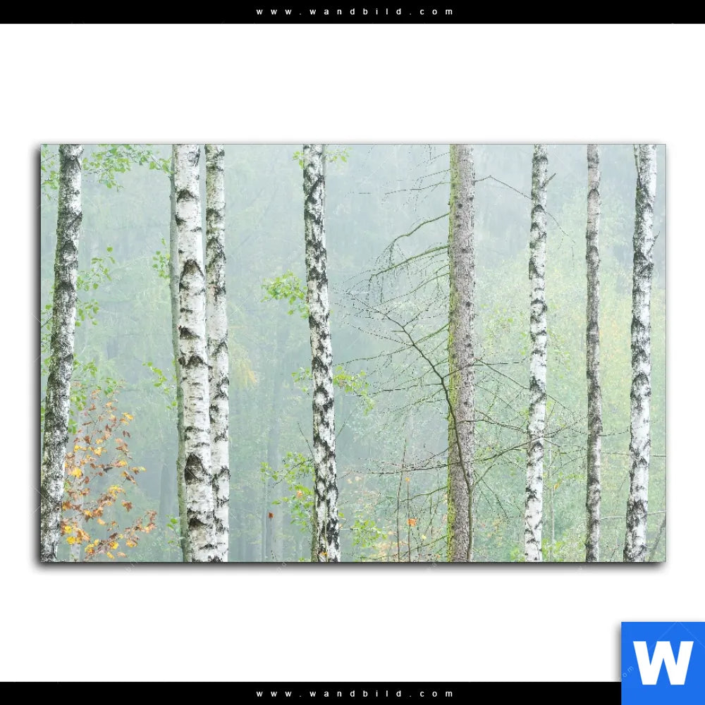 Aluminiumbild gebürstet | Nebliger Birkenwald | Querformat