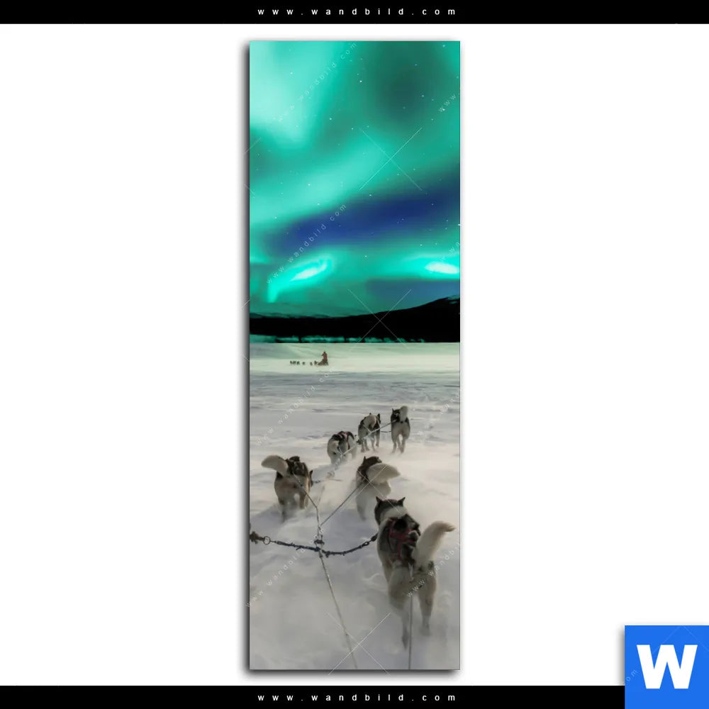 Aluminiumbild gebürstet | Nordlichter und Schlittenhunde | Schmal