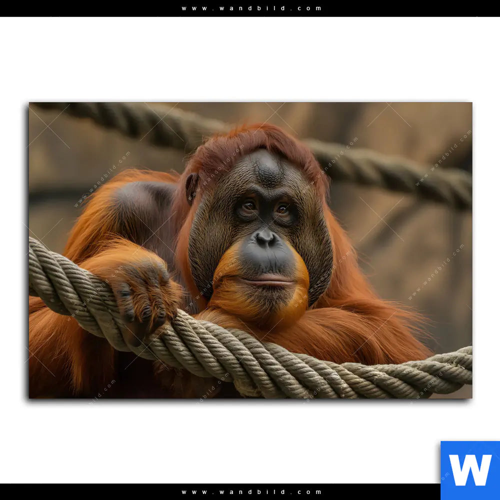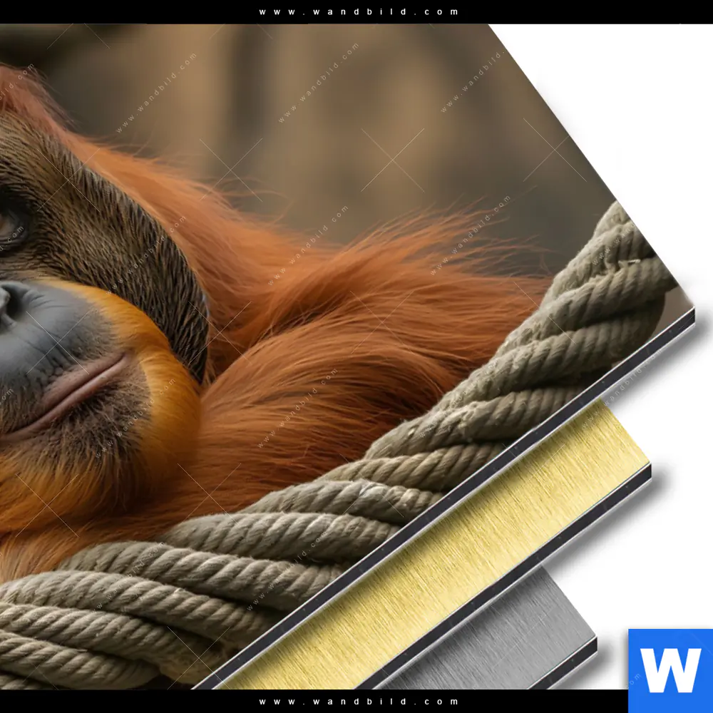Aluminiumbild gebürstet | Orang-Utan mit sanftem Blick | Querformat