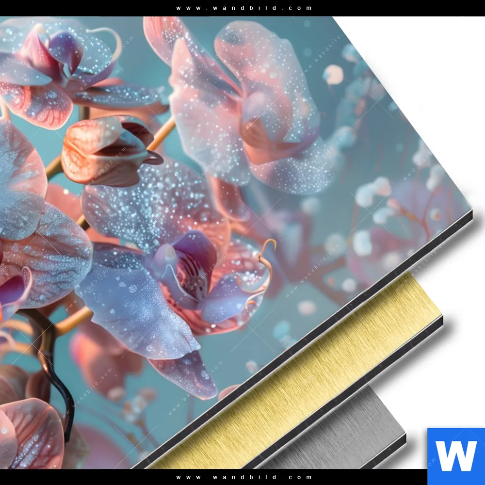 Aluminiumbild gebürstet | Orchideenblüten in Pastell | Querformat