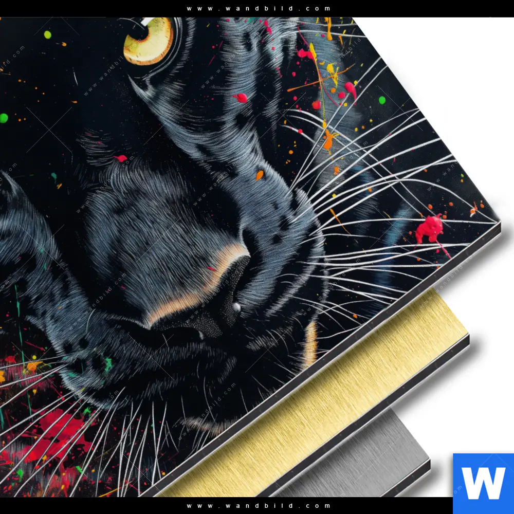Aluminiumbild gebürstet | Panther Farbexplosion | Quadrat