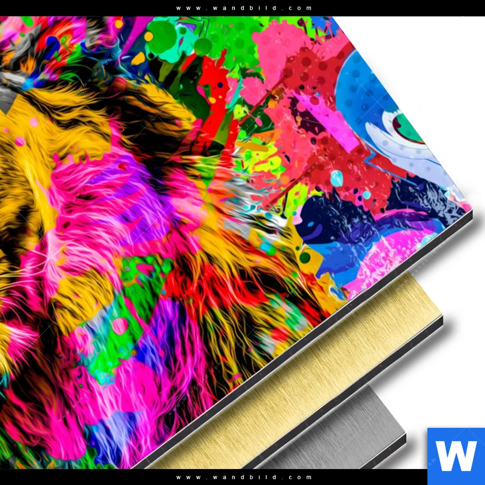 Aluminiumbild gebürstet | Pop Art Löwe | Querformat