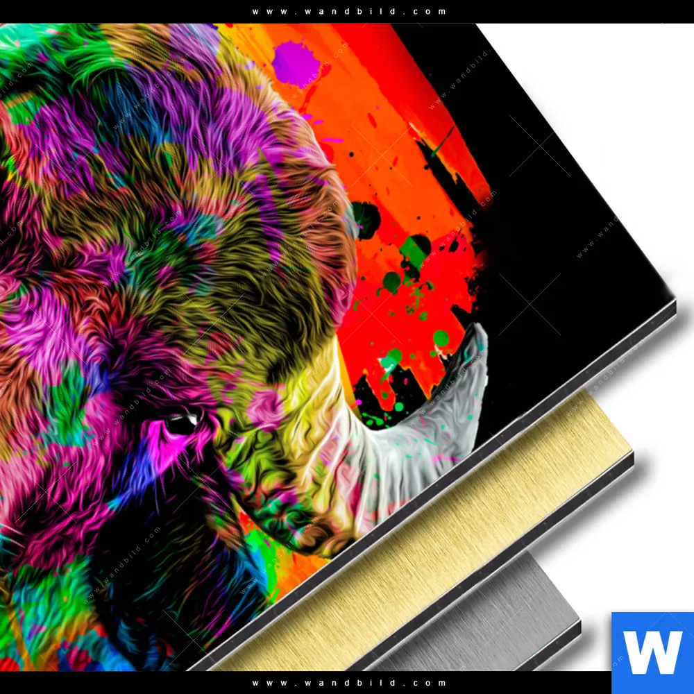 Aluminiumbild gebürstet | Pop Art Stier | Hochformat