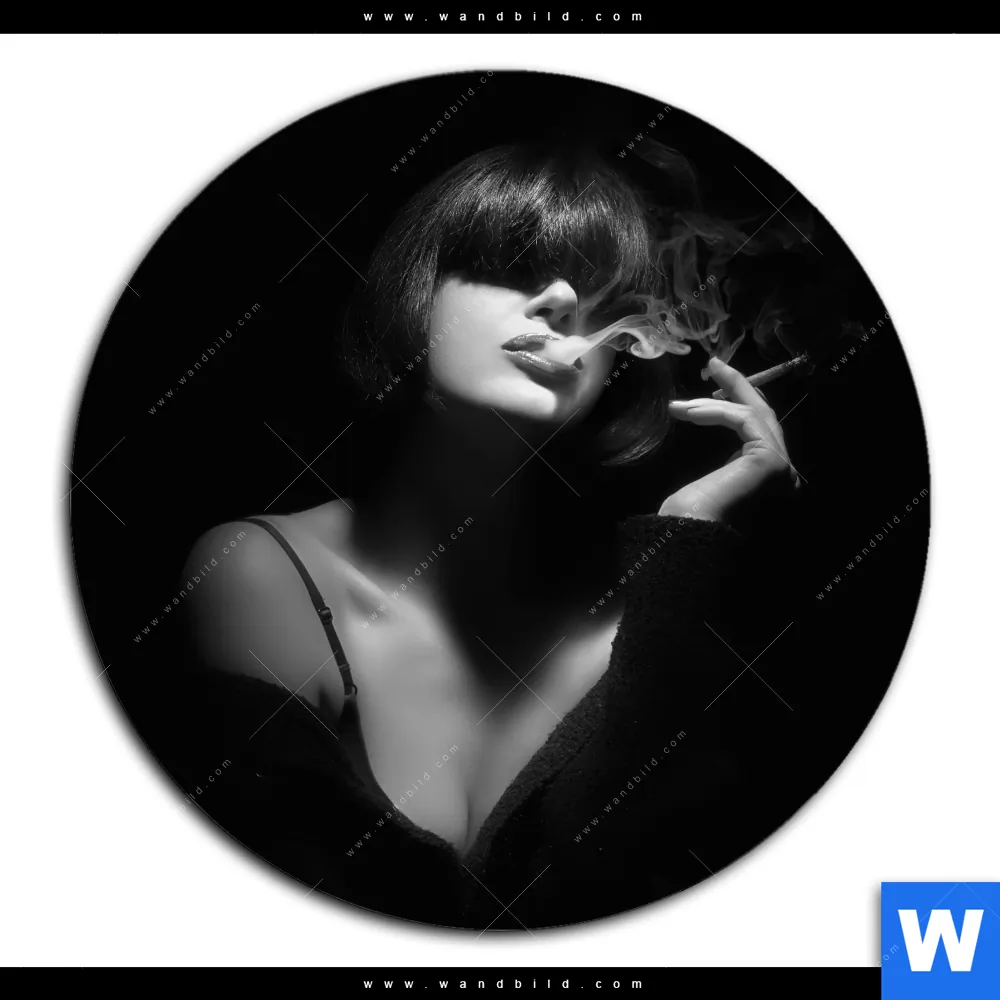 Aluminiumbild gebürstet | Rauchende Lady | Rund
